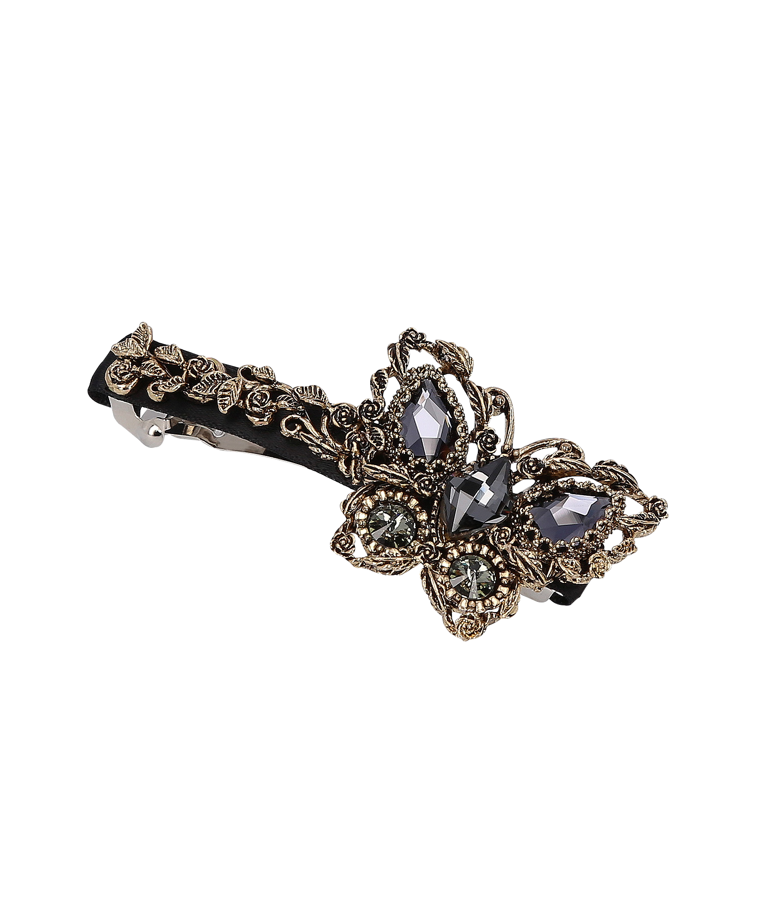 華やかな蝶のモチーフを手の込んだデザインで美しく仕上げた、まるで宝石のようなヘアバレッタです。