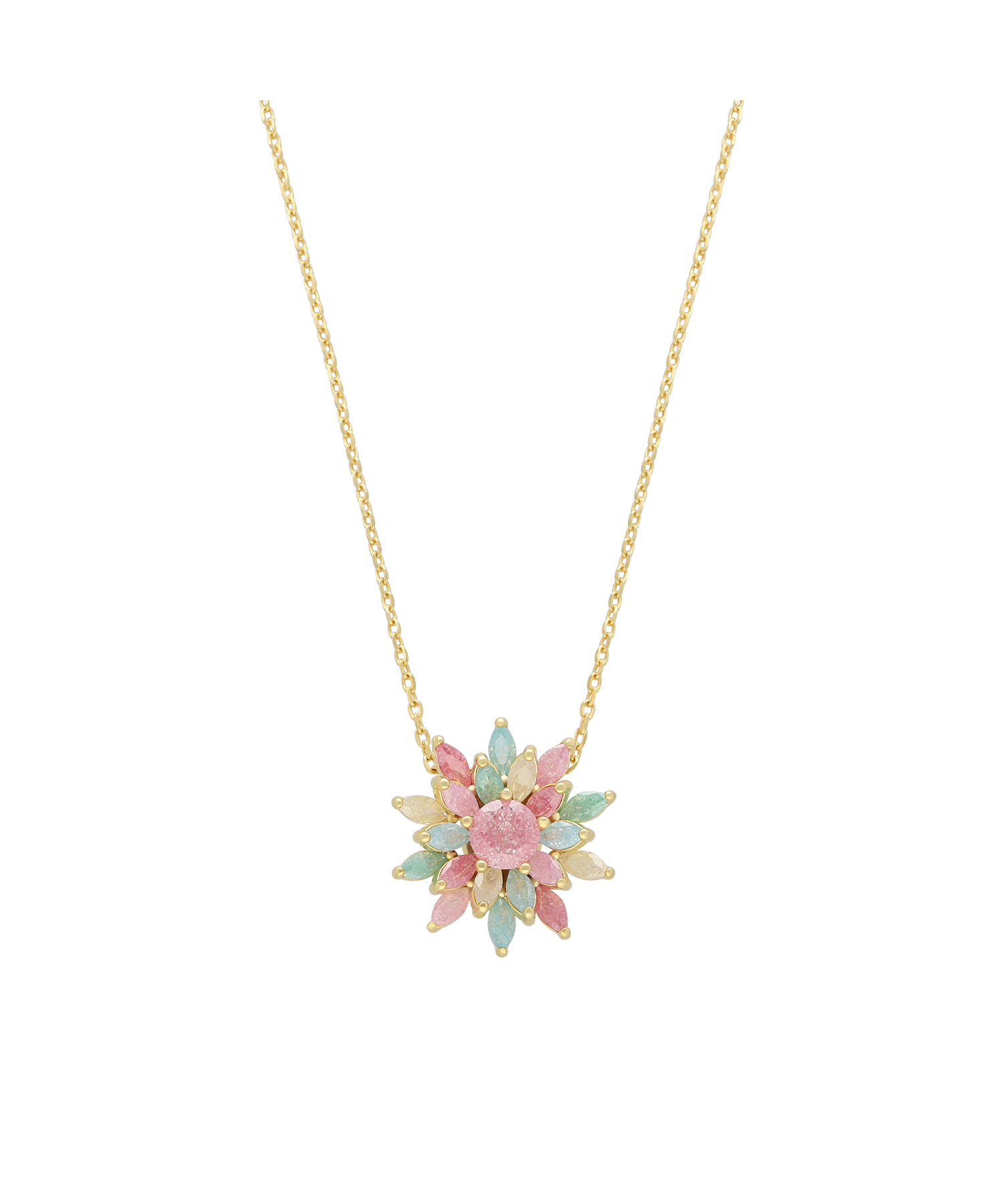 まるでフラワーブーケのような、マルチカラーストーンが咲き誇るネックレス。